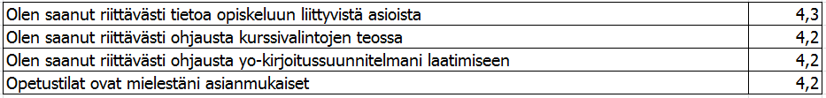 Keskiarvojen perusteella parhaat arvosanat saivat: