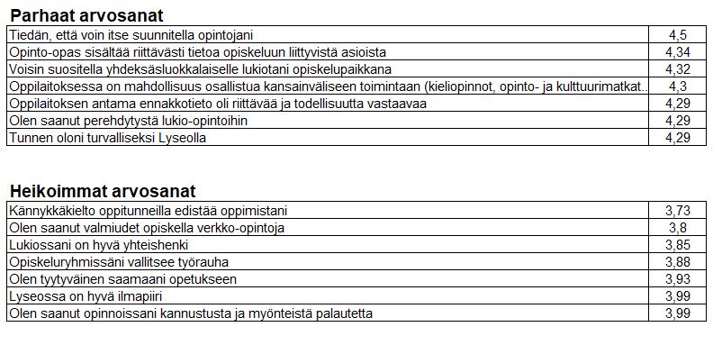 Parhaat ja heikoimmat arvosanatSavonlinnan lyseon lukioEnsimmäisen vuosikurssin tulokysely 2024-202525.3.2025