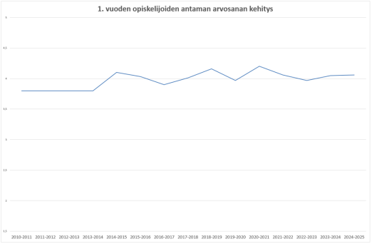 1. vuoden opiskelijoiden antaman arvosanan kehitysSavonlinnan lyseon lukioEnsimmäisen vuosikurssin tulokysely 2024-202525.3.2025