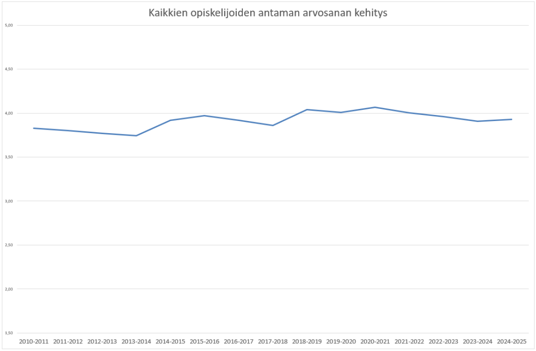 Kaikkien opiskelijoiden antaman arvosanan kehitysSavonlinnan lyseon lukioEnsimmäisen vuosikurssin tulokysely 2024-202525.3.2025