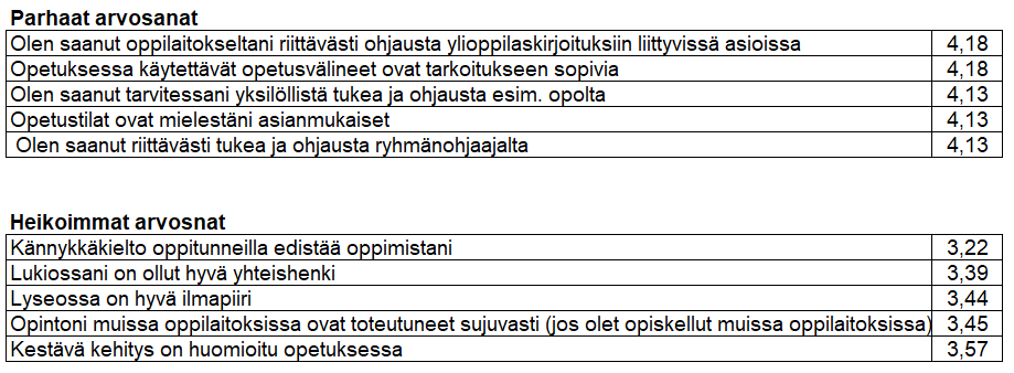 Parhaat ja heikoimmat arvosanatSavonlinnan lyseon lukioKolmannen vuosikurssin päättökysely 2024-202526.3.2025