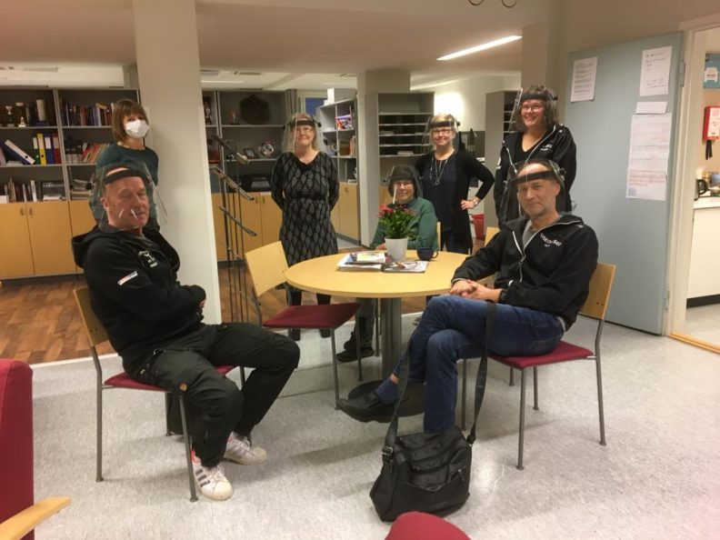 Opettajat uusissa työvarusteissa opehuoneessa valmiina lähdössä oppitunneille.