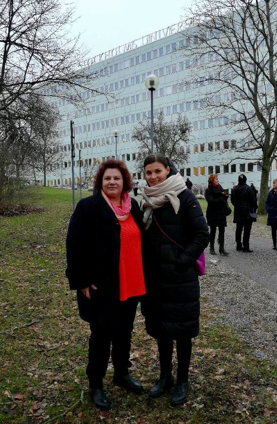 Opinto-ohjaajat Pia ja Sara tutustumassa Tukholman yliopistoon.