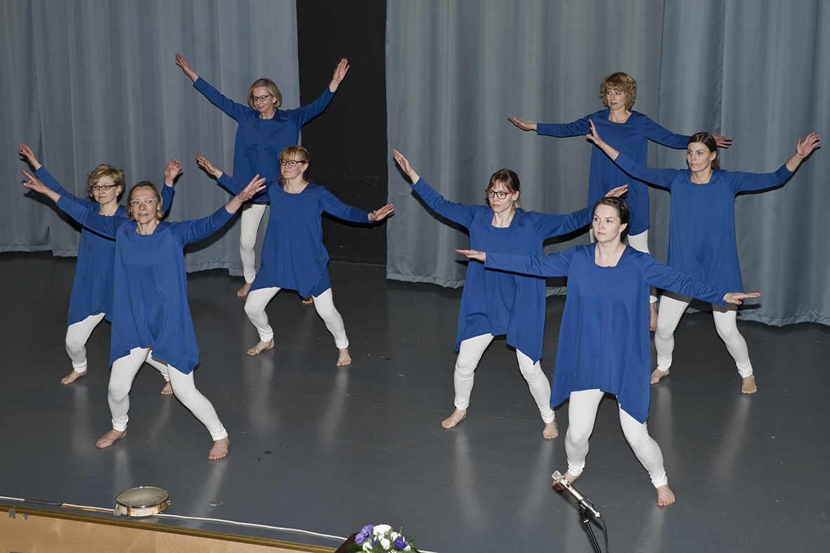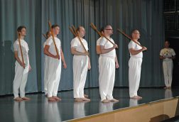 Opettajien taitovoimistelunäytös perinteitä kunnioittaen.