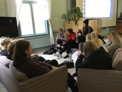 Opiskelijakunnan hallituksen jäseniä koulutuksessa Sääminki-talolla