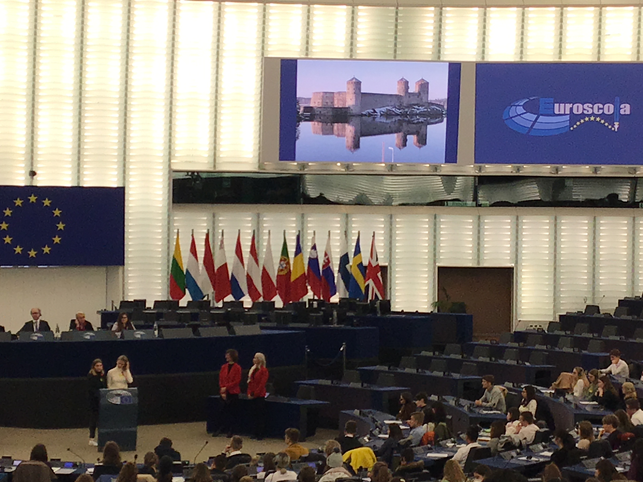 Tammikuun 23. päivänä meidän koulun kymmenen opiskelijaa Virpin johdolla osallistuivat yhteen vuosittaisista Euroscola-päivistä. Mukana olivat Aamu, Fasu, Iina, Iulia, Luka, Sara, Sofia, Suvi, Tuukka ja Veeti. Ryhmä valmistautui etukäteen parin kuukauden aikana sekä tutustumalla EU:n toimintaan että paneutumalla kuuteen ryhmätyöaiheeseen. Ne käsittelivät mm. ympäristöä, turvallisuutta ja ihmisoikeuksia sekä muuttoliikettä.