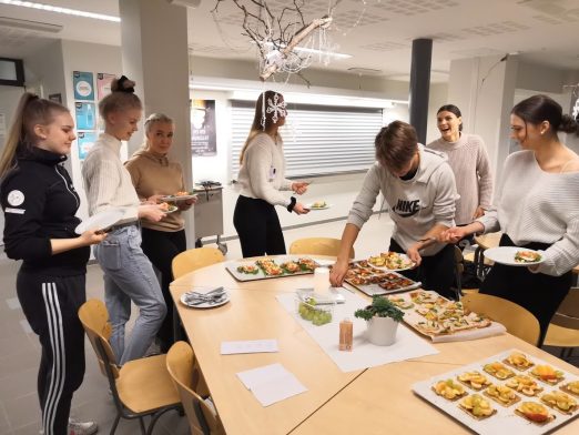 Yeesaamon opiskelijoita yhteisessä illanvietossa.
