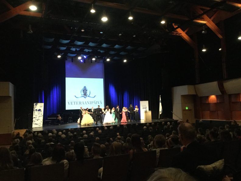 Lyseolaiset esittämässä vanhoja tansseja Veteraanipäivän juhlassa