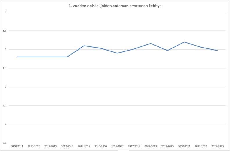 1. vuosikurssin arvosanan kehitys 2010-2023Savonlinnan lyseon lukioEnsimmäisen vuosikurssin tulokysely 2022-202320.3.2023