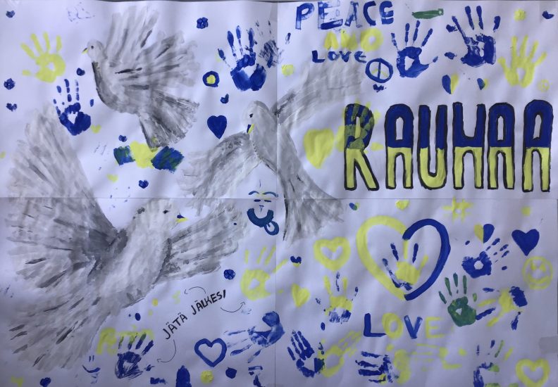 Koulun väki sai jättää jälkensä rauhankyyhkyjulisteeseen