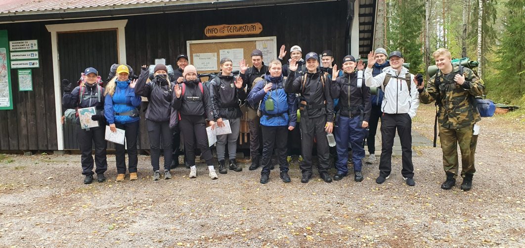 Retkeilykurssi suuntautui tänäkin lukuvuonna patikoiden Tervastuvalle. Mukana oli 18 reipasta retkeilijää. Saimme kokeilla, miltä tuntuu patikoida rinkat selässä kantaen vuorokauden tarvikkeet mukana. Teimme luontohavaintoja, mietimme reitinvalintaa, harjoittelimme suunnistusta, teltan pystytystä ja riippumaton kiinnitystä sekä ruuanlaittoa. Nautimme myös saunomisesta ja uimisesta.