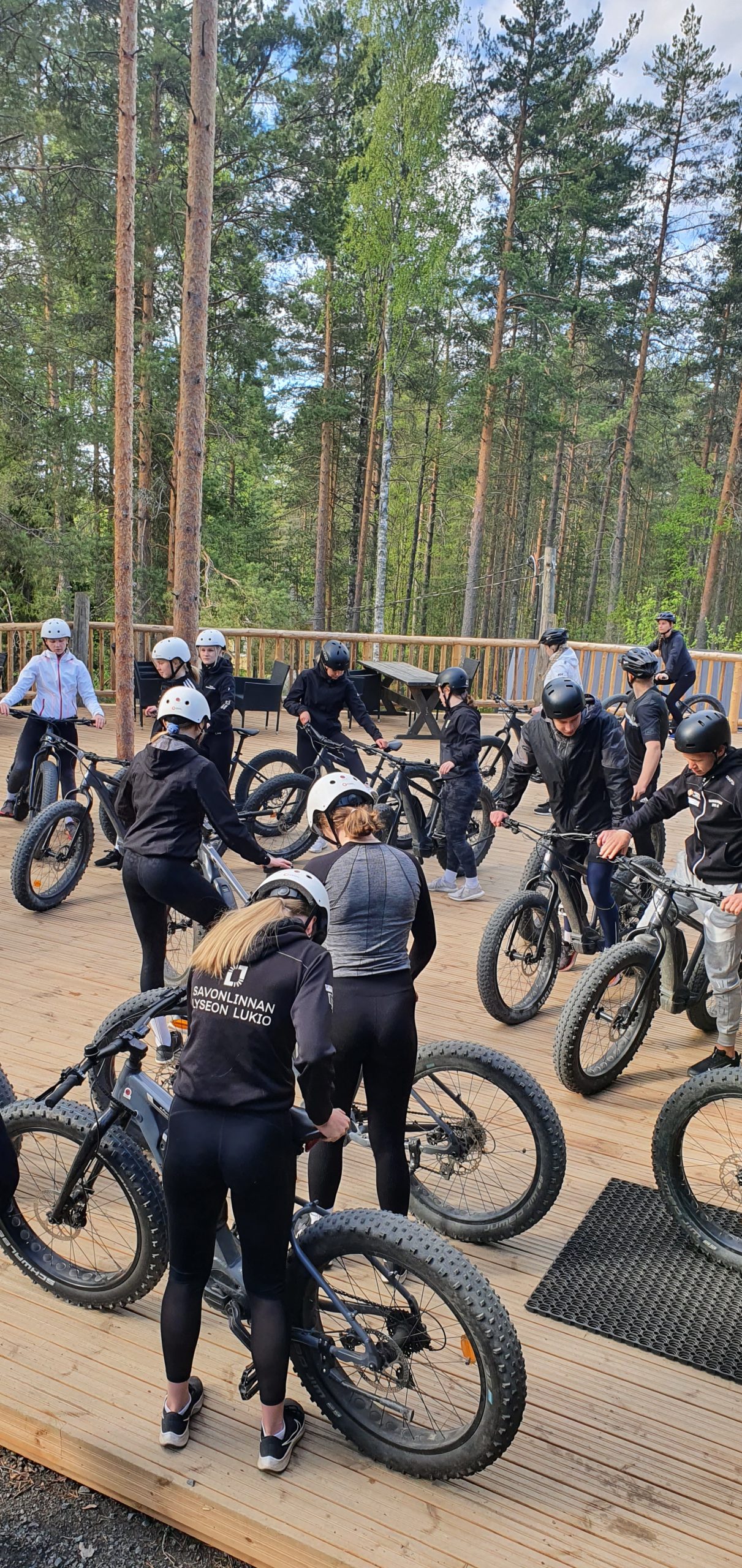 tapäivä että ensi vuoden liikuntakalenteri saatiin tehdyksi. Opiskelijat pääsivät suunnittelutyön ohella kokeilemaan maastopyöräilyä sähkö eBikeilla sekä nauttimaan järvikylpylästä.